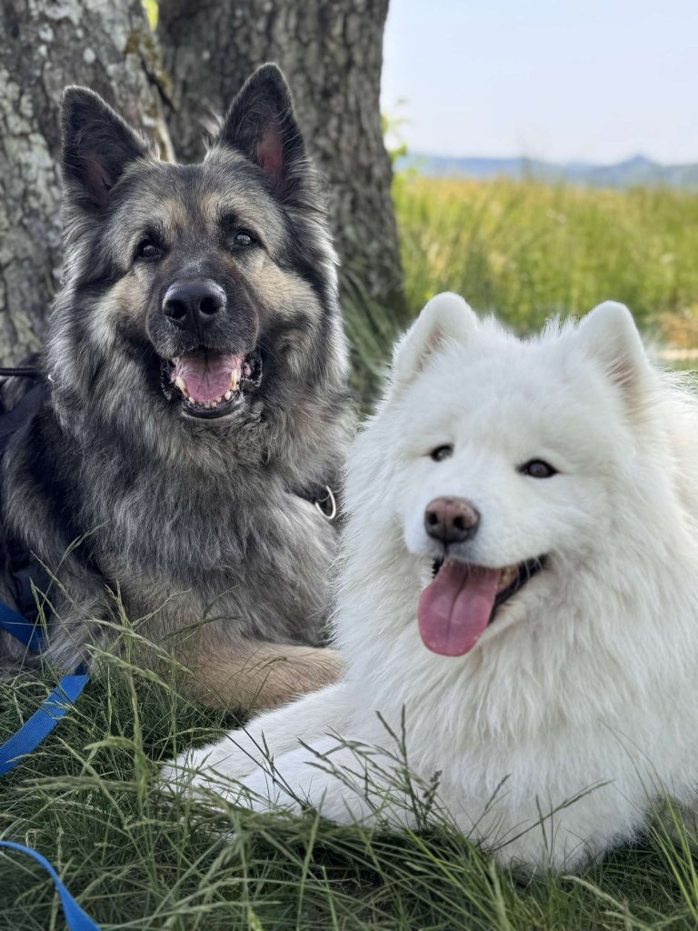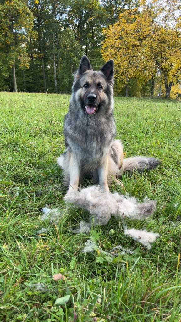 Nous avons trois femelles : deux grises argentées charbonnées et une noire.