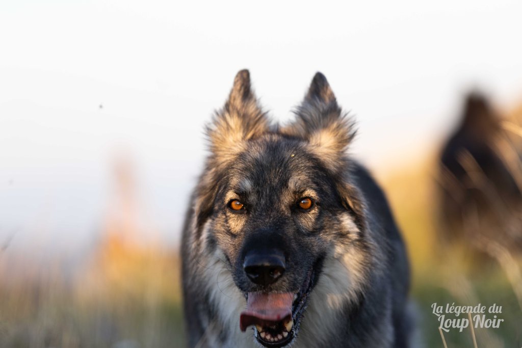 Une chienne observatrice, qui guette tout, ce qui en fait une très bonne gardienne lors de nos absences! Tout cela en étant discrète tel un loup… elle en a d’ailleurs l’allure, le regard et la couleur 😉