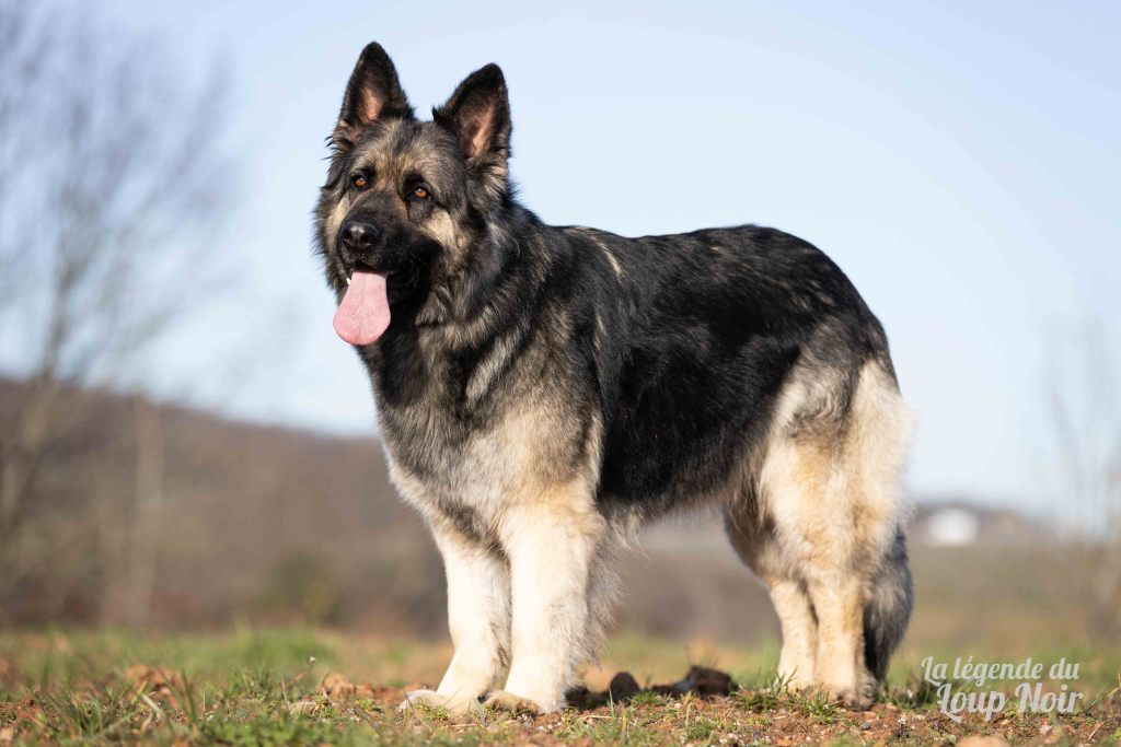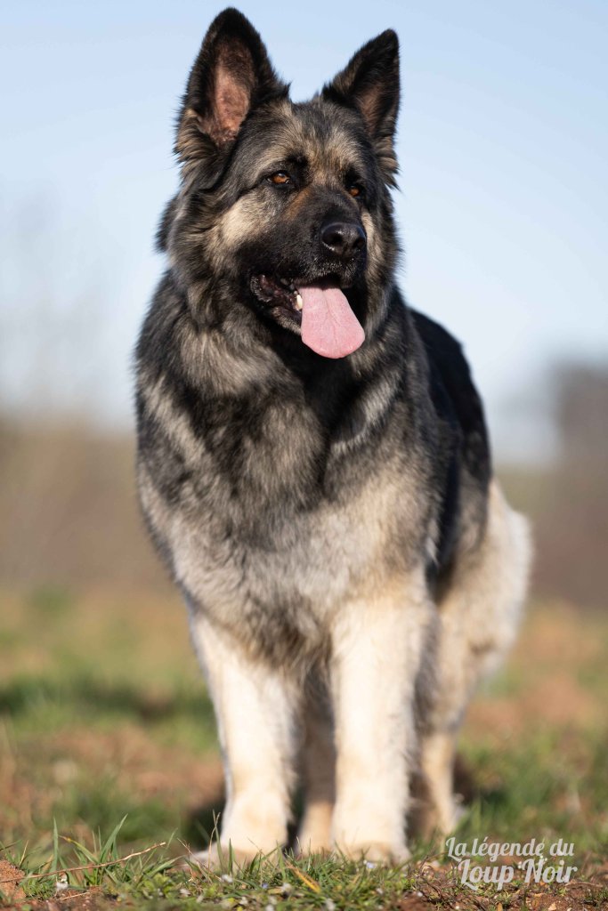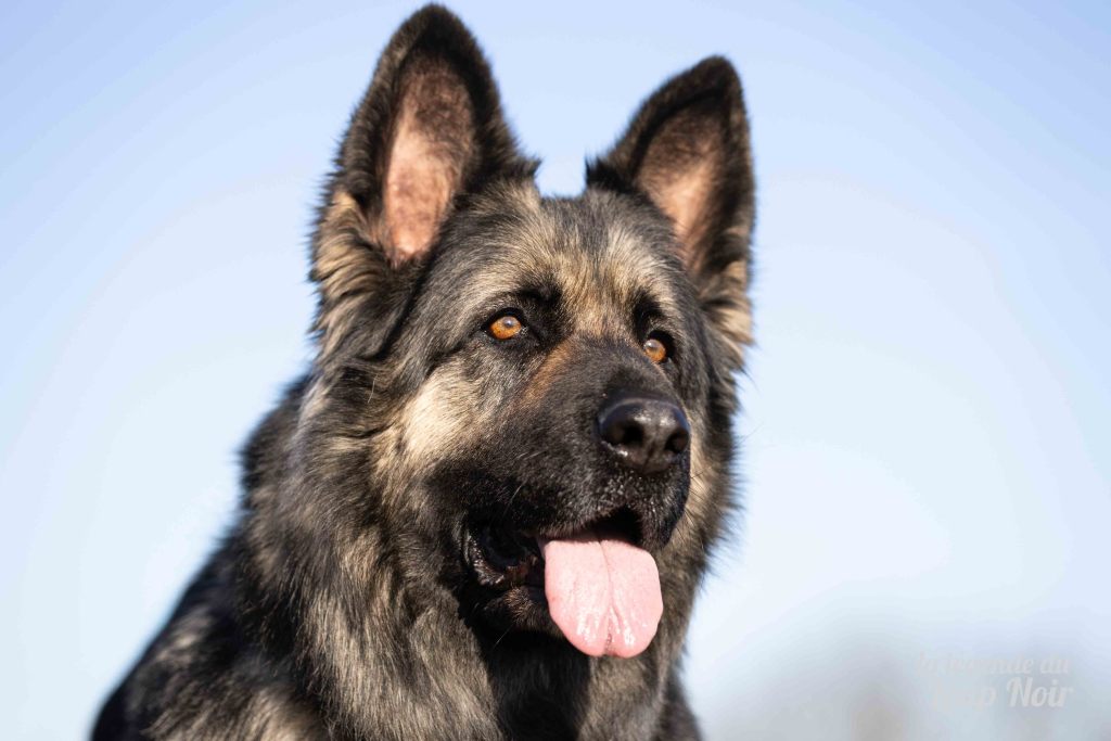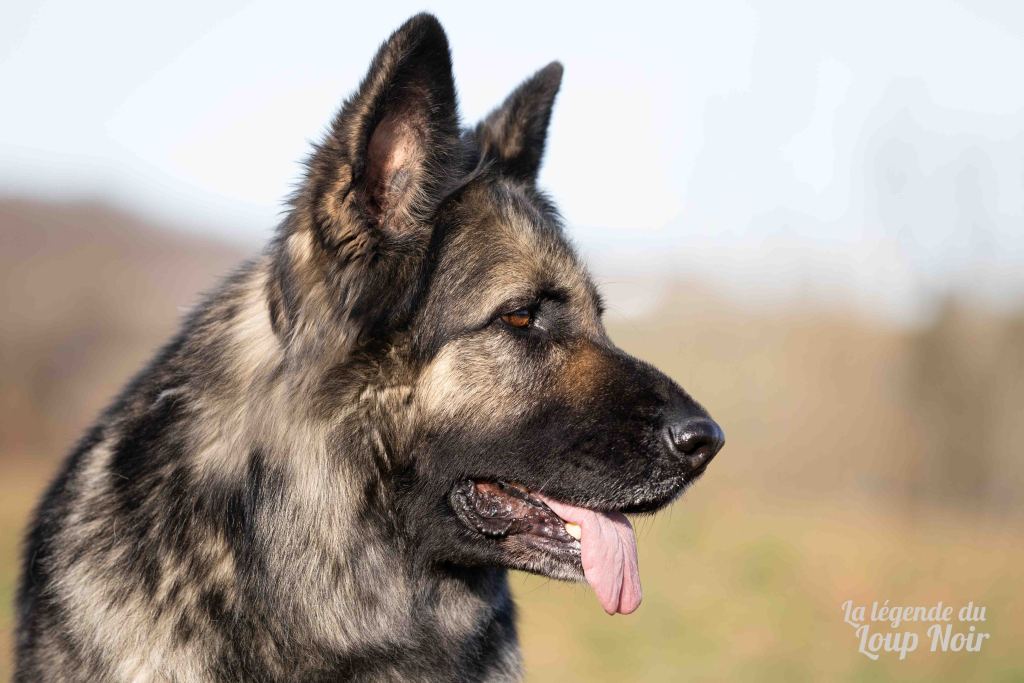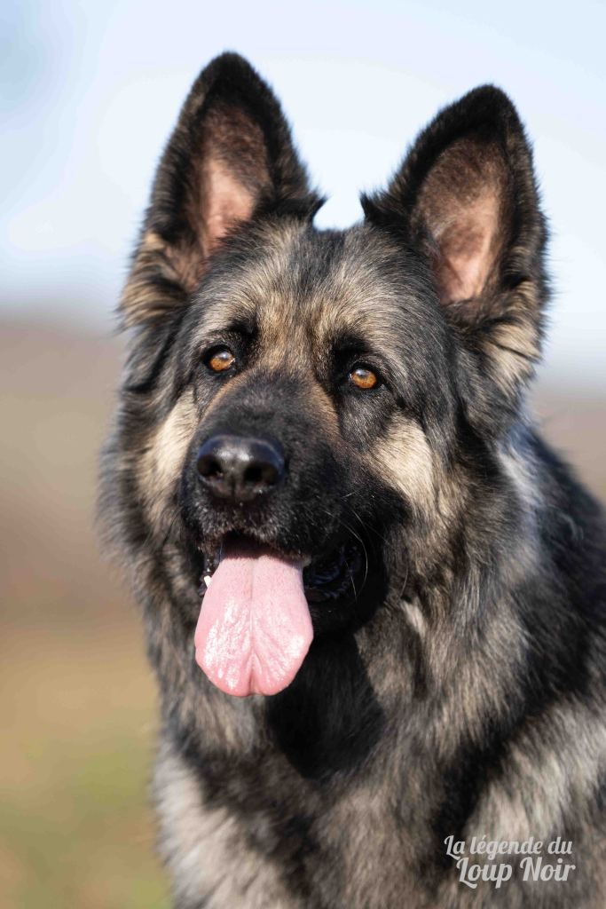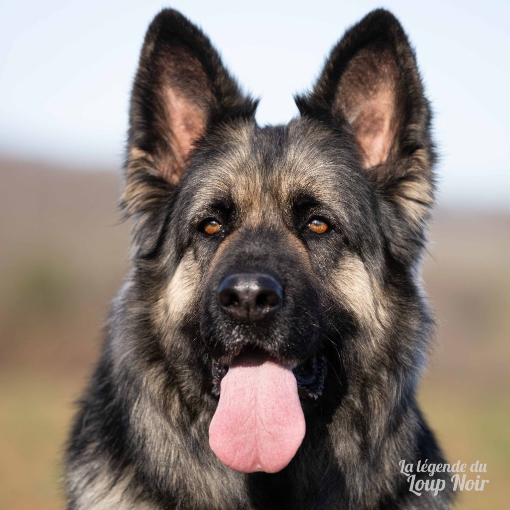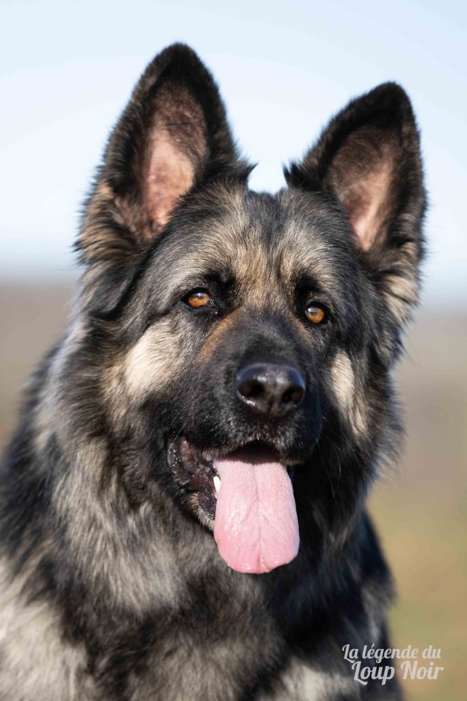 Elle a hérité d’une construction charpentée et du museau large de sa maman. De la belle expression de tête de son papa et du poil long et très fourni de son grand-père Chief.