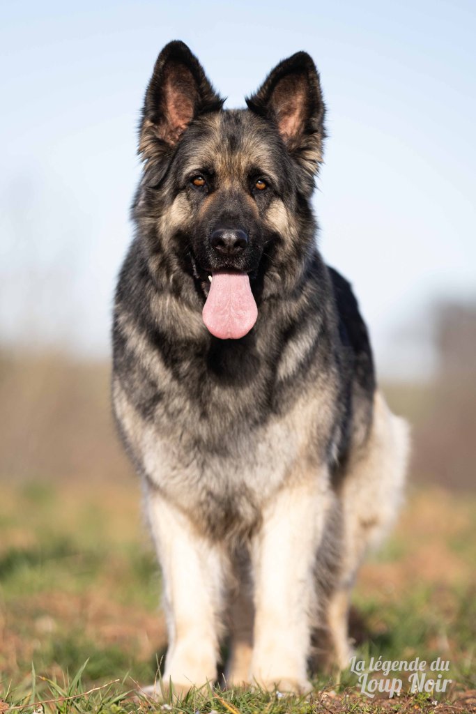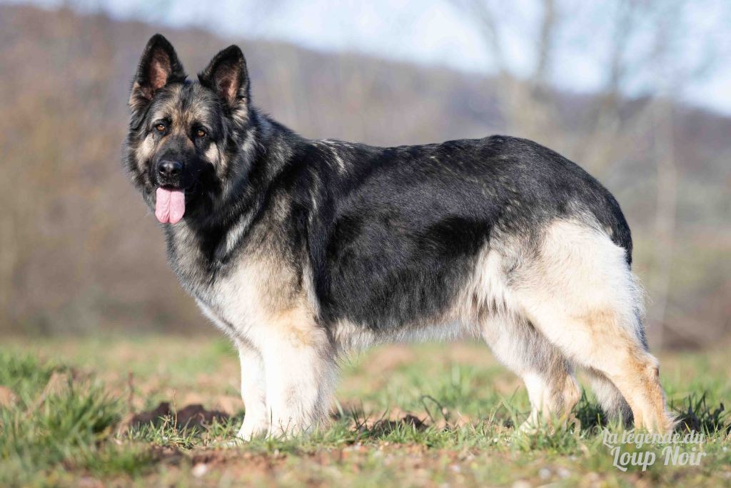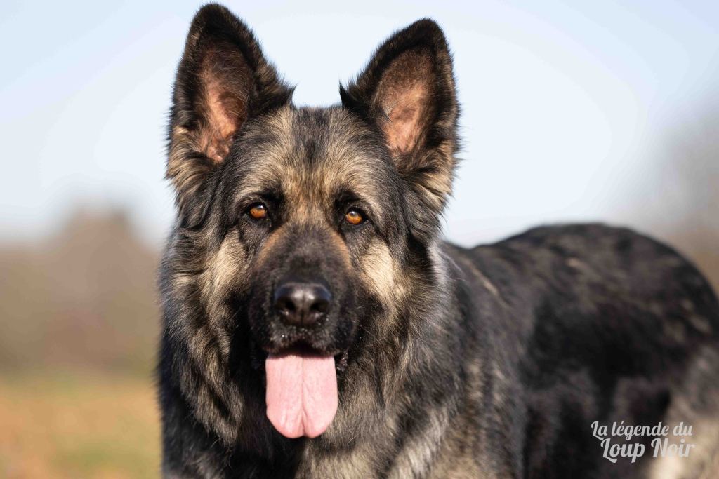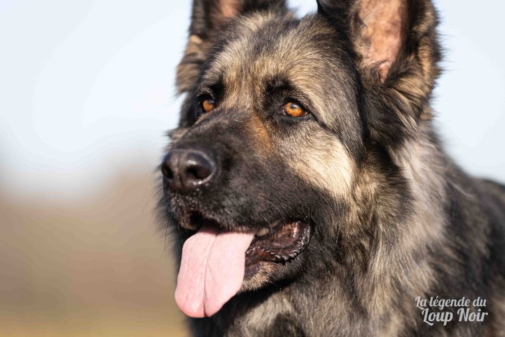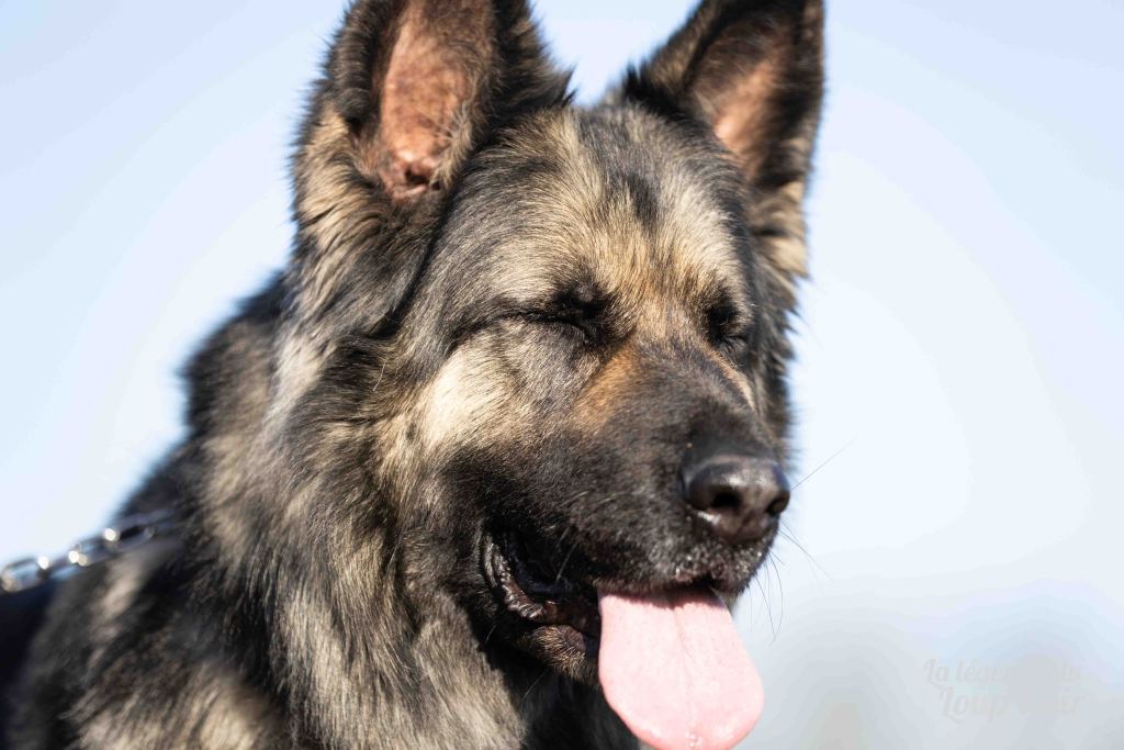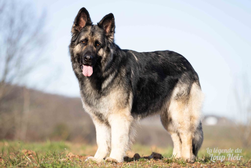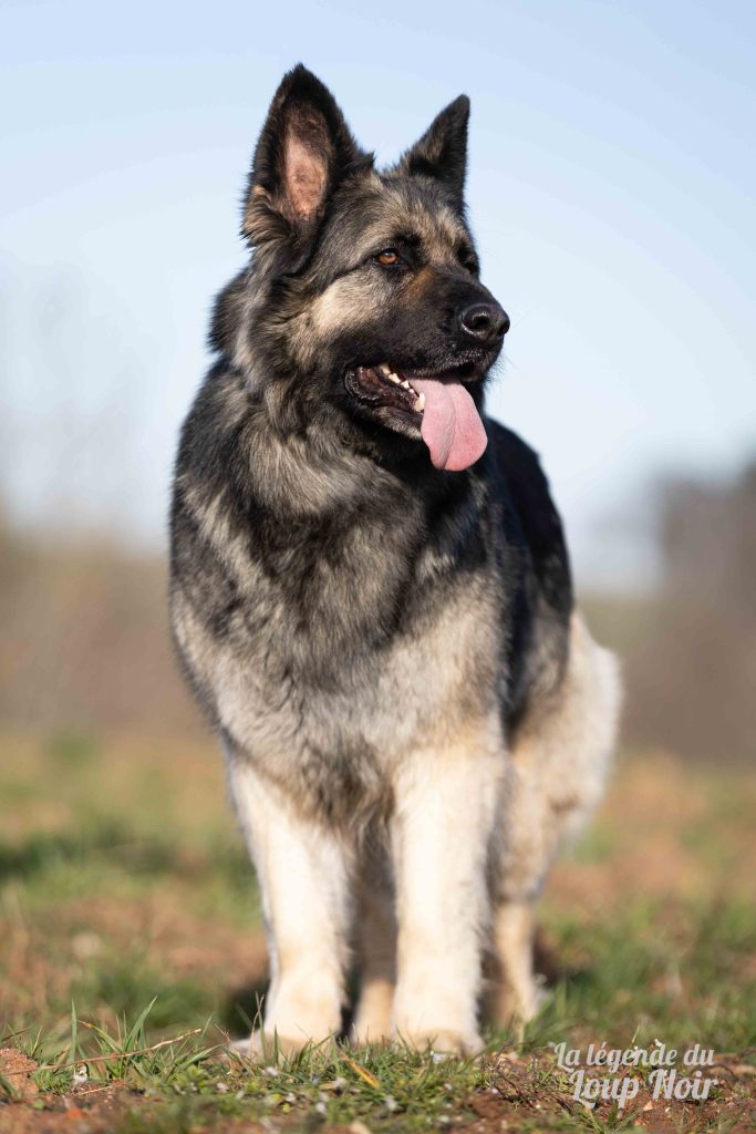 Elle a hérité d’une construction charpentée et du museau large de sa maman. De la belle expression de tête de son papa et du poil long et très fourni de son grand-père Chief.