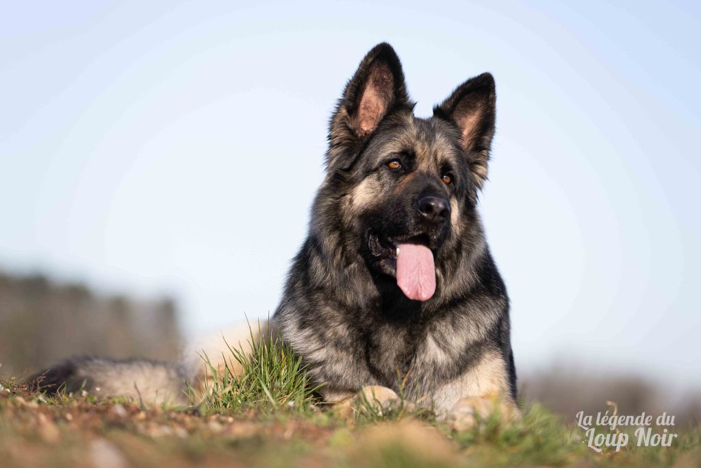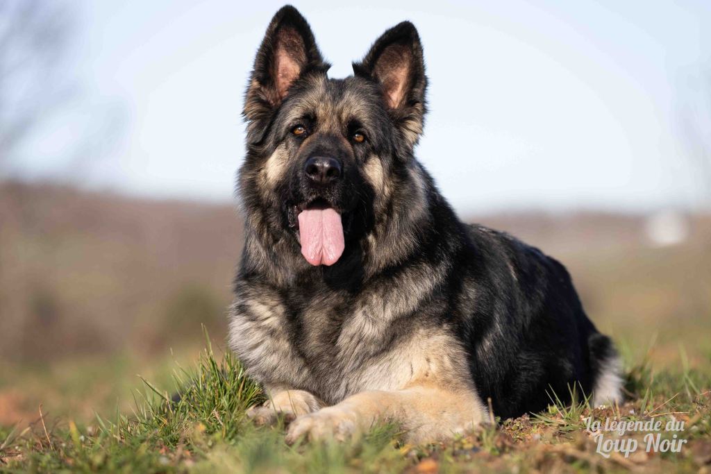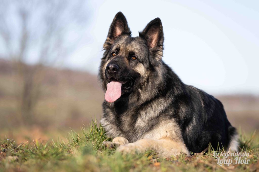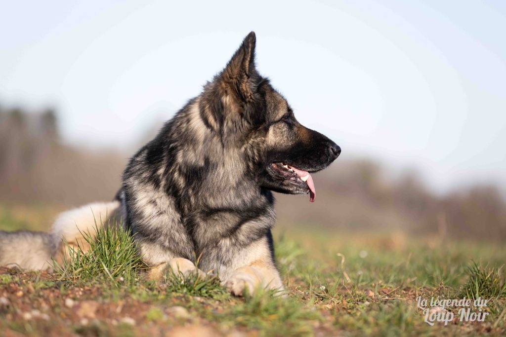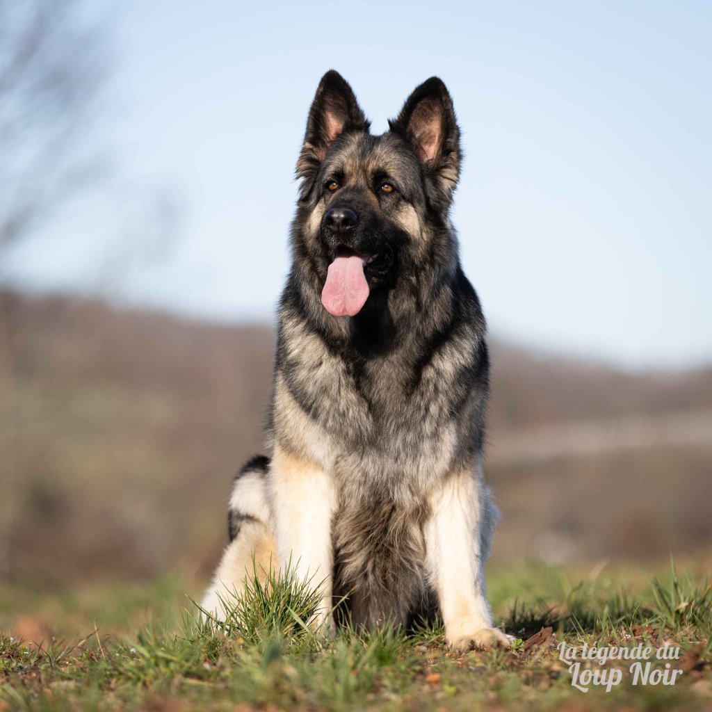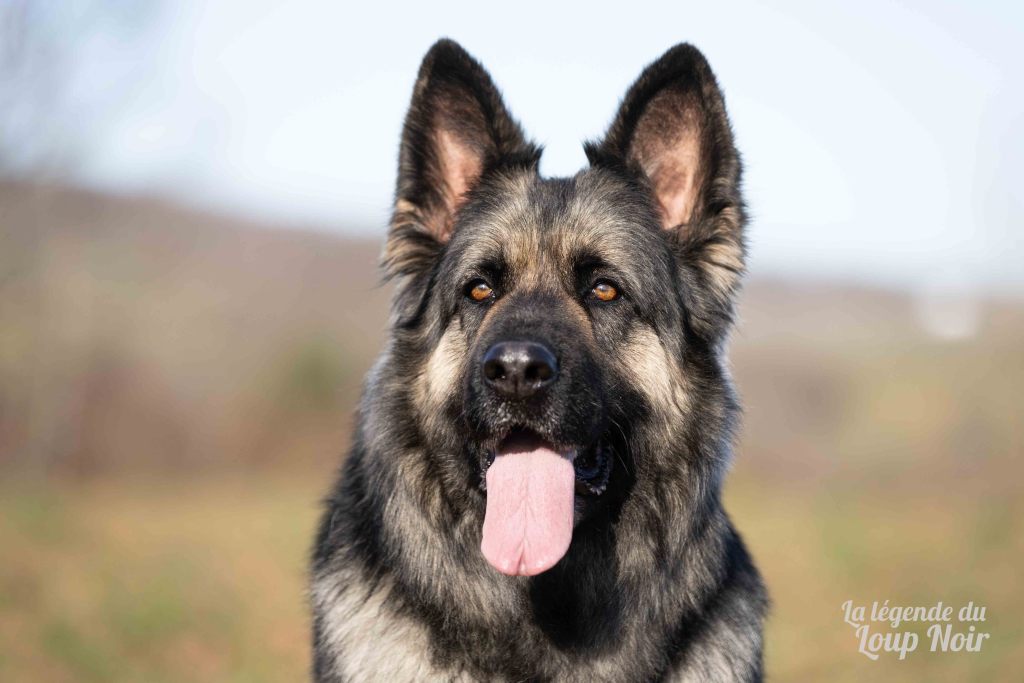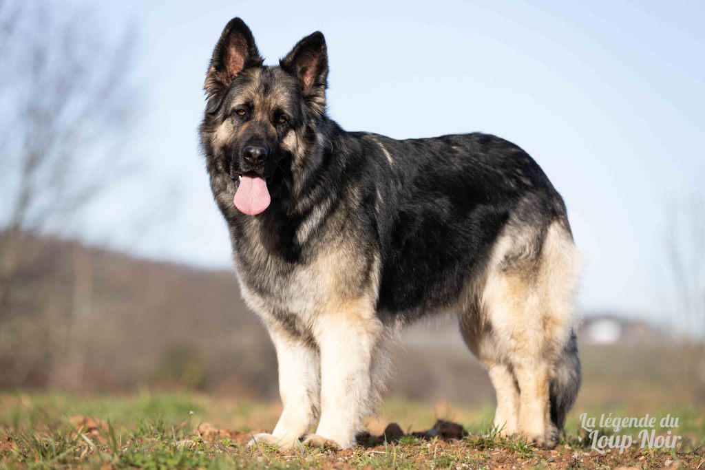 Elle a hérité d’une construction charpentée et du museau large de sa maman. De la belle expression de tête de son papa et du poil long et très fourni de son grand-père Chief.
