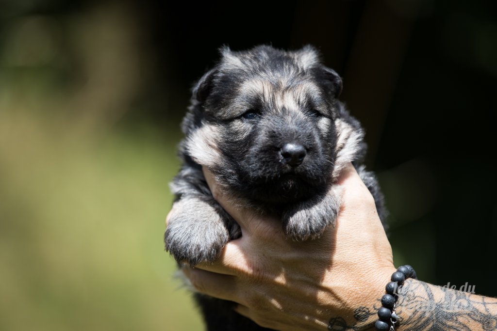 Sûre d’elle elle ne se laisse pas impressionner par les autres membres de la meute. Elle aime plus que tout l’humain avec qui elle est attentive et câline.