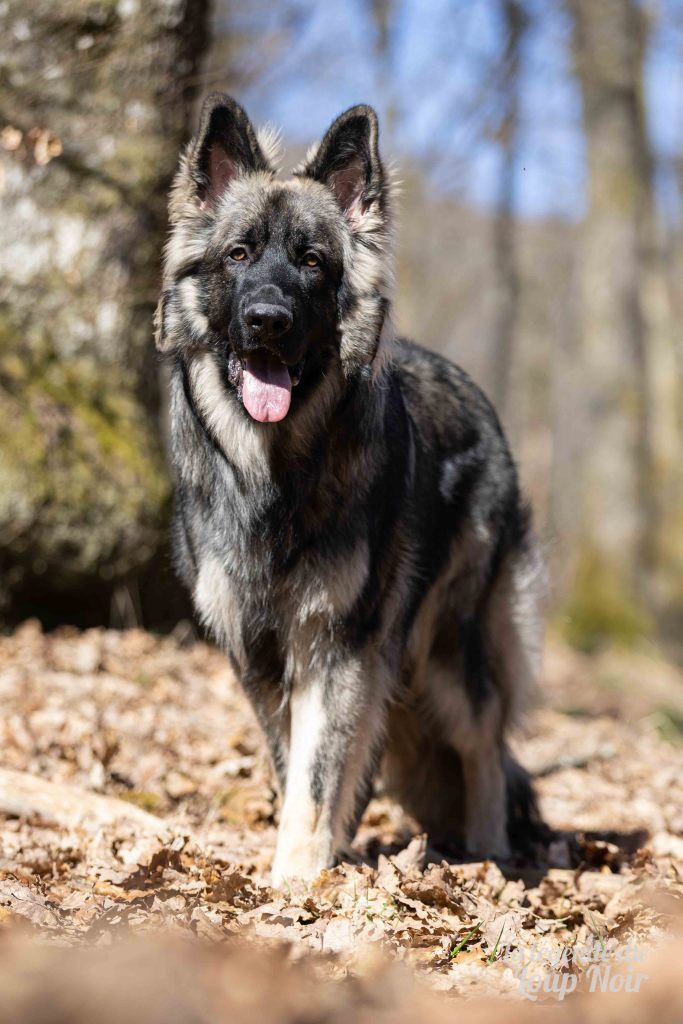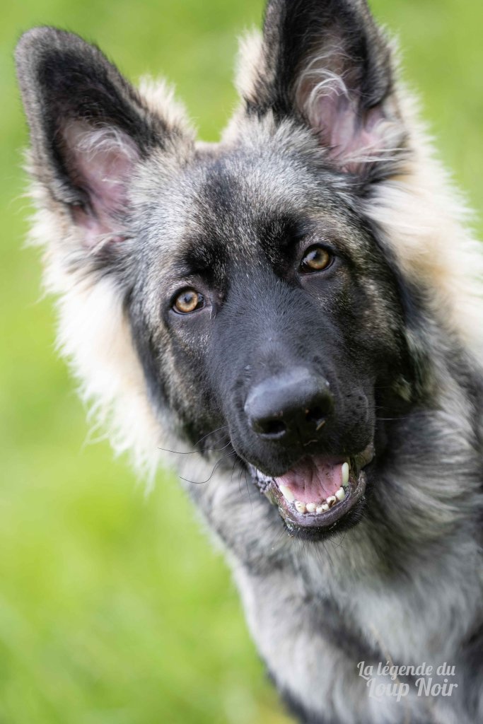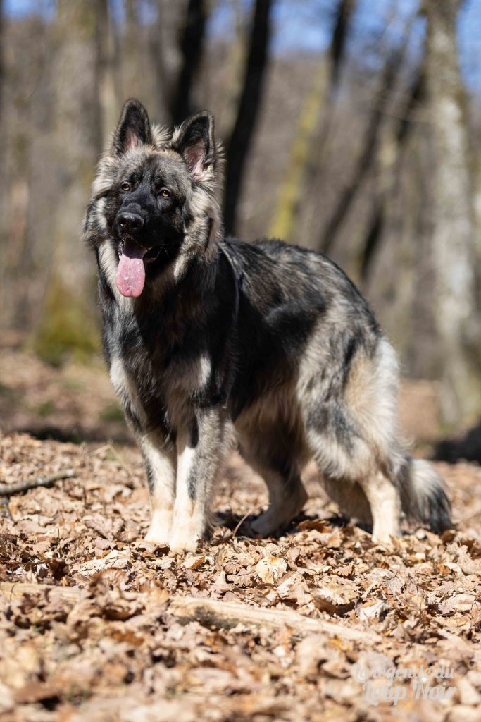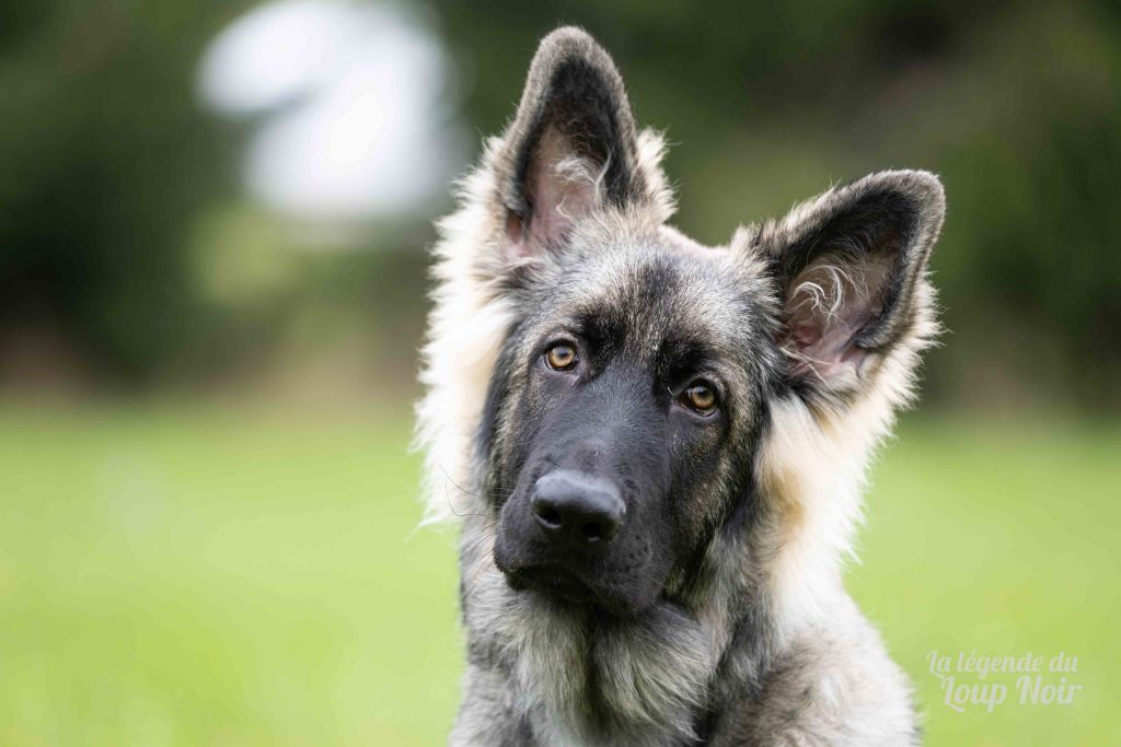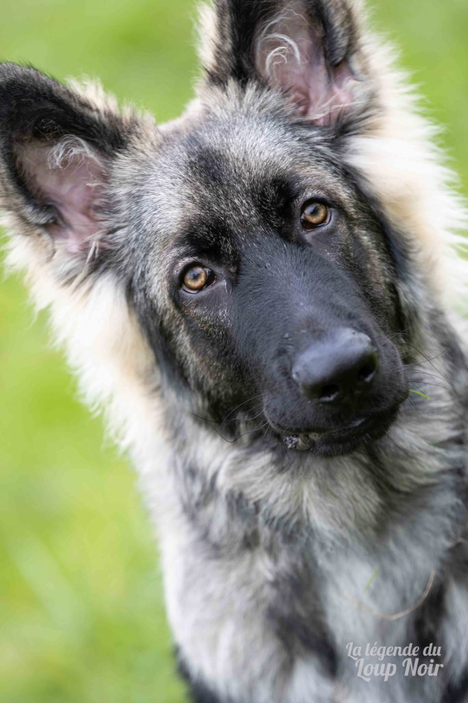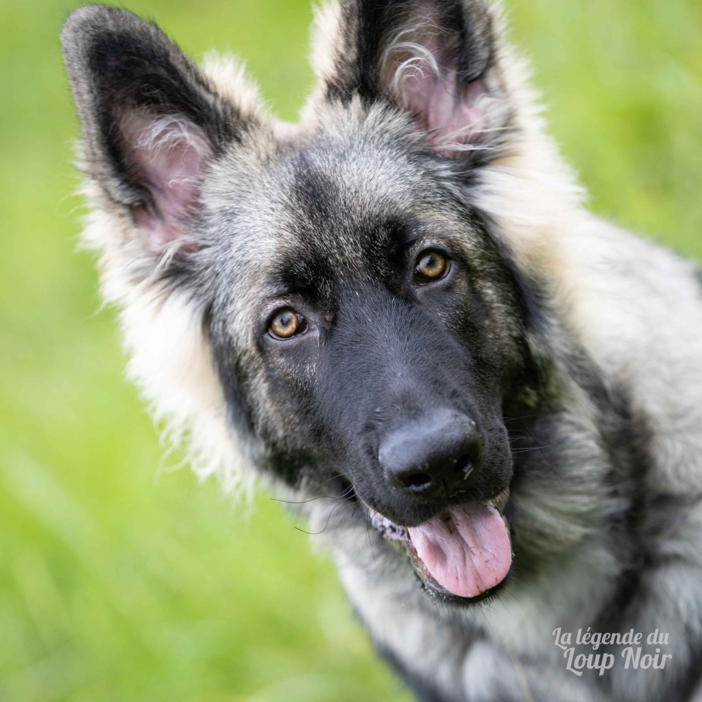 Arès est un jeune mâle au gabarit prometteur, avec de belles pattes solides et un regard ambré intense qui capte tout ce qui se passe autour de lui. Observateur et attentif, il semble toujours analyser le monde comme s’il préparait un plan… ou attendait qu’on prononce le mot “promenade”, « friandise », « copains »…