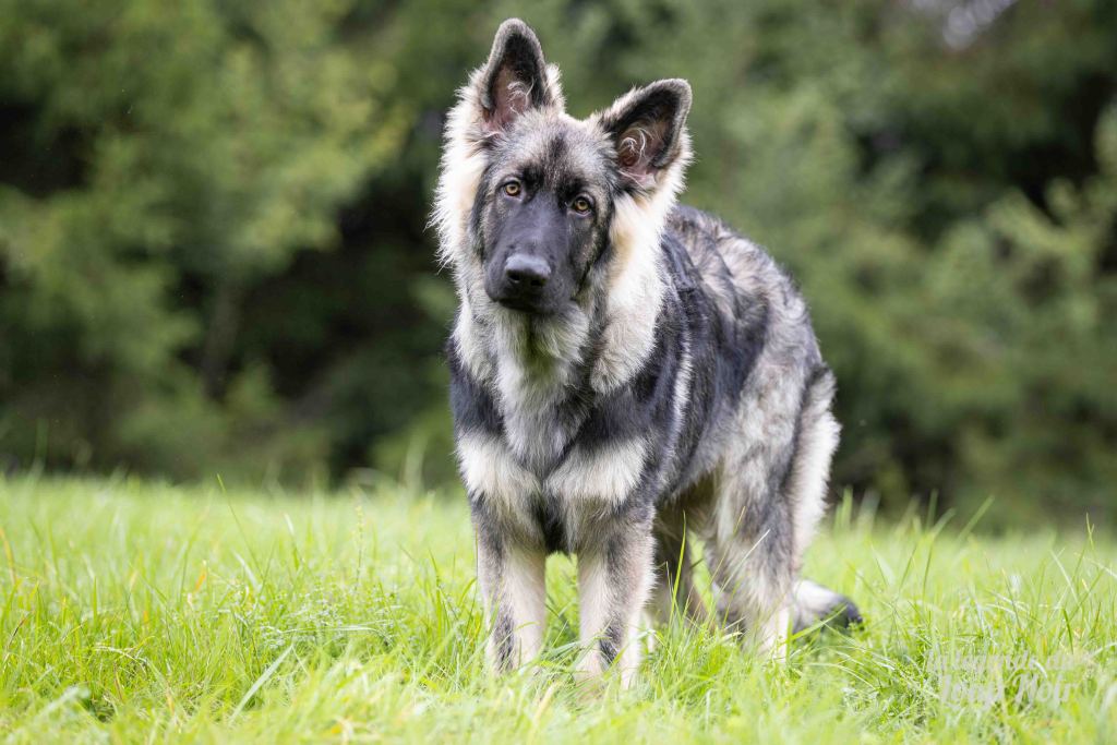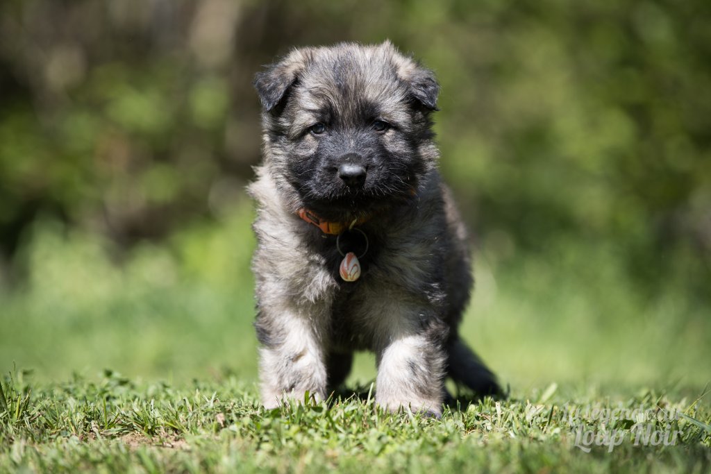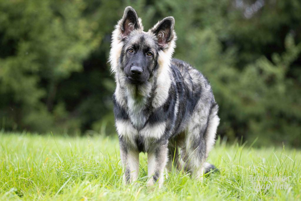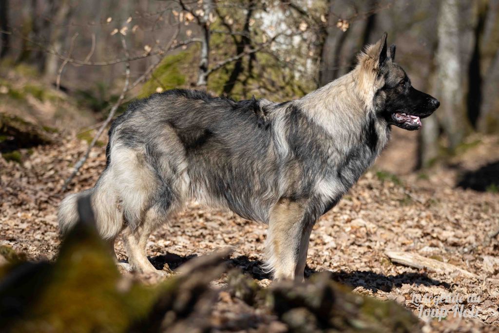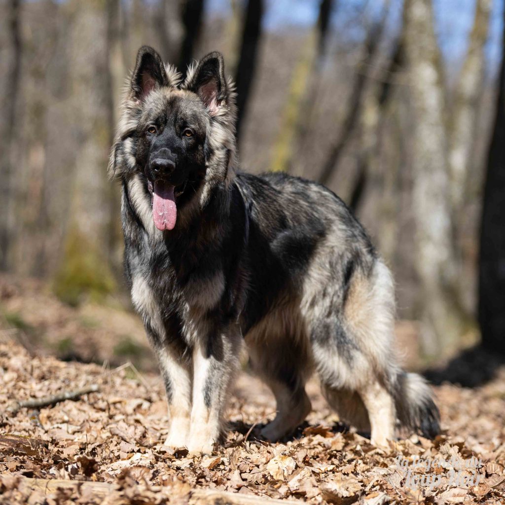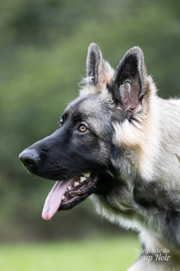 Arès est un jeune mâle au gabarit prometteur, avec de belles pattes solides et un regard ambré intense qui capte tout ce qui se passe autour de lui. Observateur et attentif, il semble toujours analyser le monde comme s’il préparait un plan… ou attendait qu’on prononce le mot “promenade”, « friandise », « copains »…