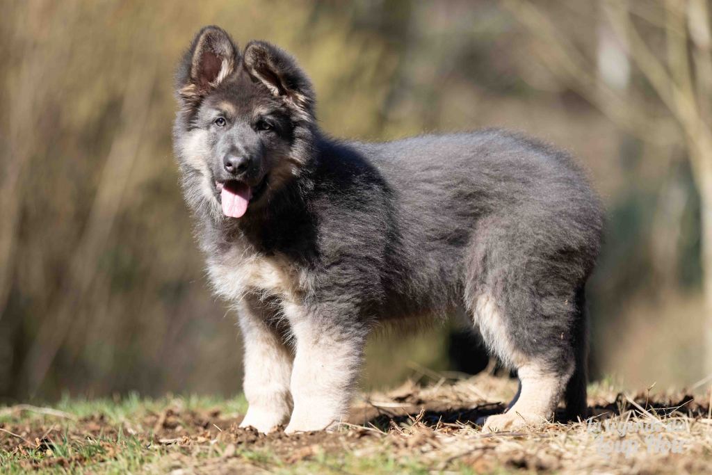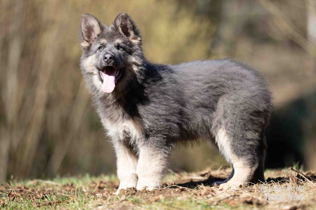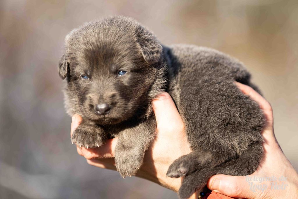 Aylie, fille de Ursie et de Vasco, est une petite merveille unique pour notre élevage : sa magnifique robe bleue et argentée est une première en 15 années d’histoire de l’élevage. Après les argentés charbonnés de bleu on passe au bleu et argenté qui est tout aussi joli.