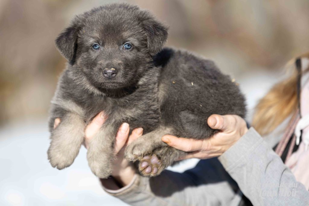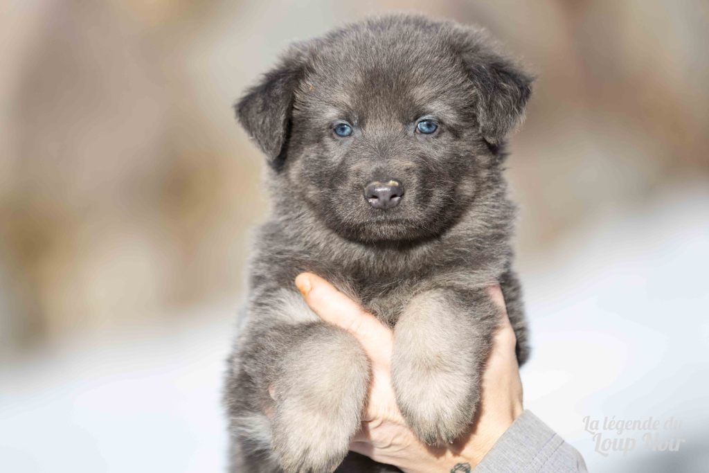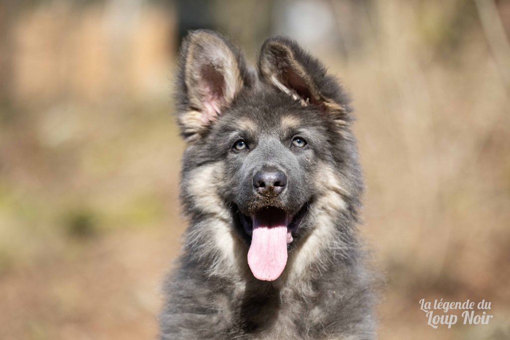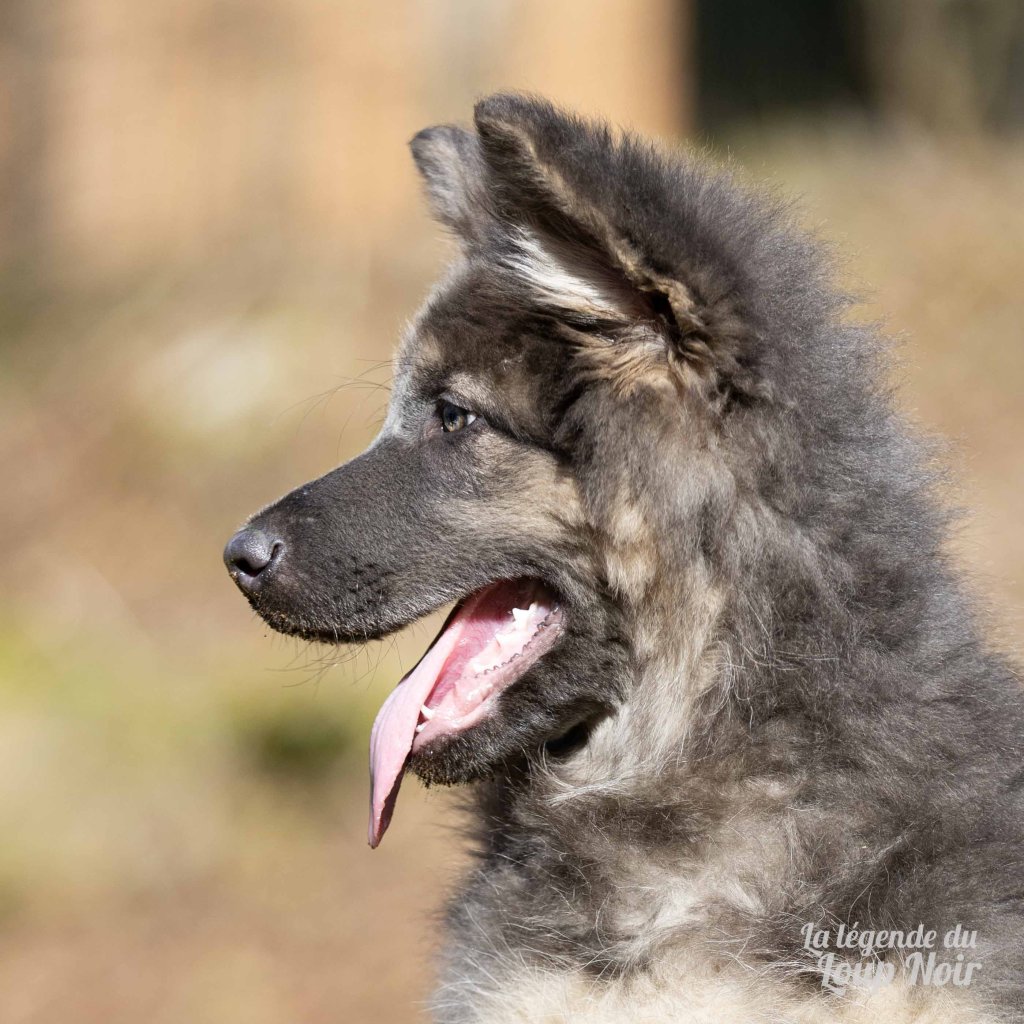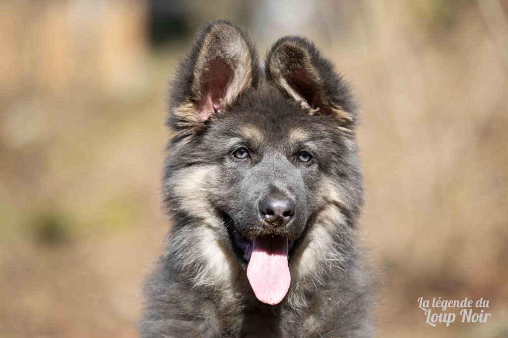 Ses superbes yeux jaunes clairs et expressifs lui donnent un regard de louve qui touche immédiatement le cœur.