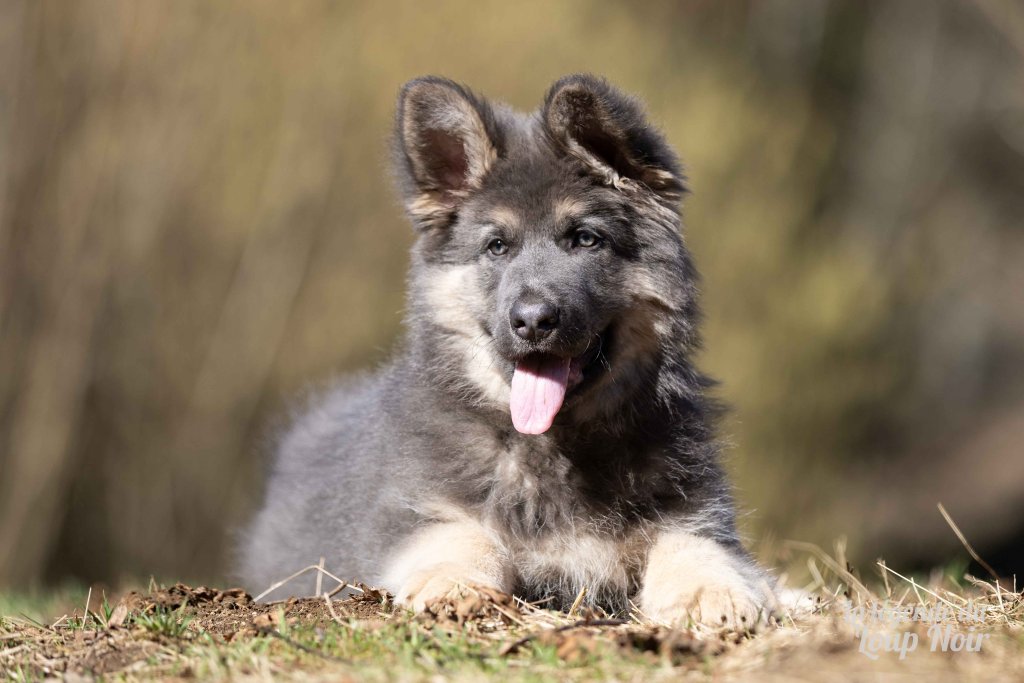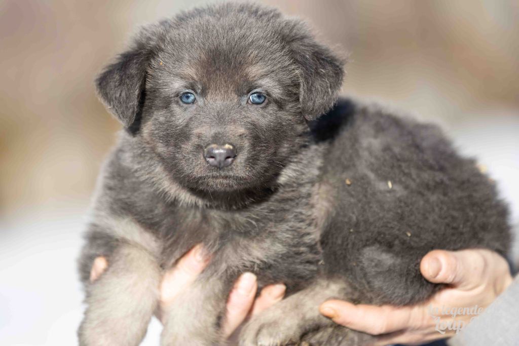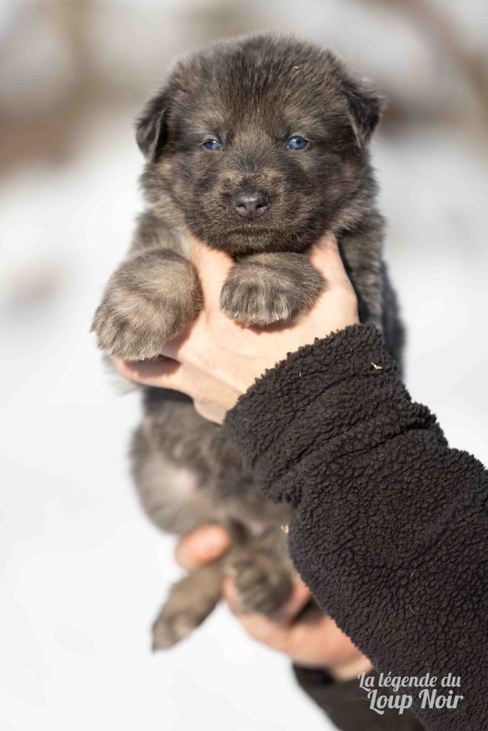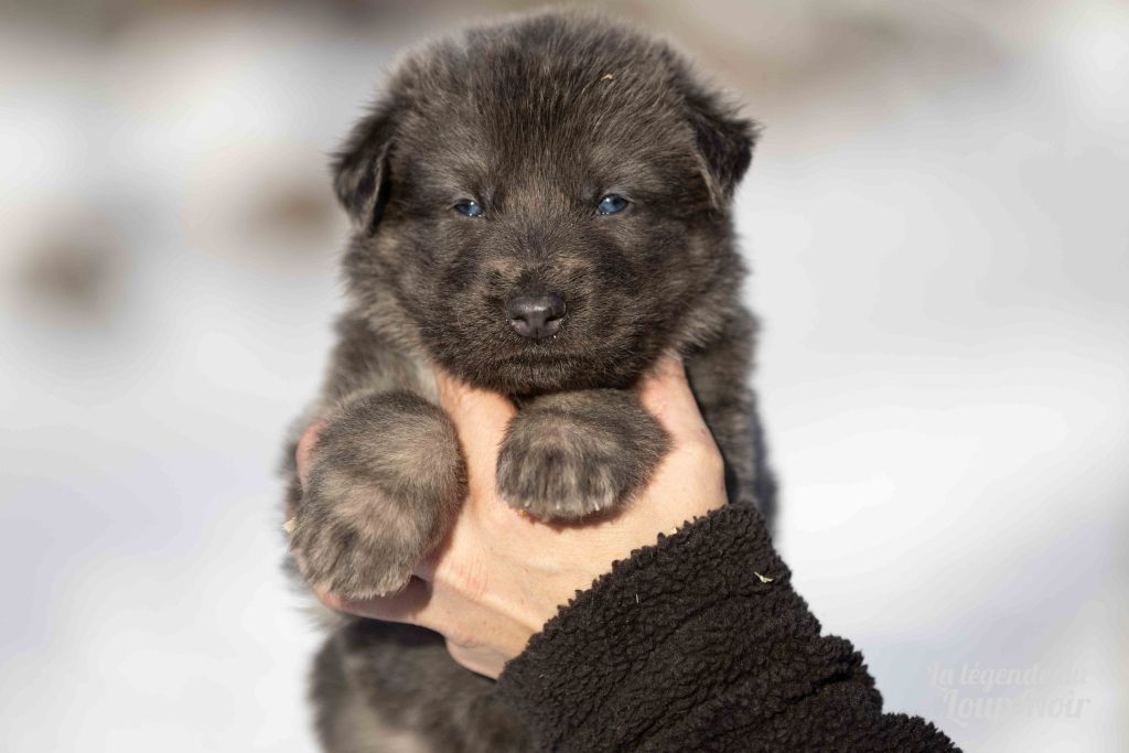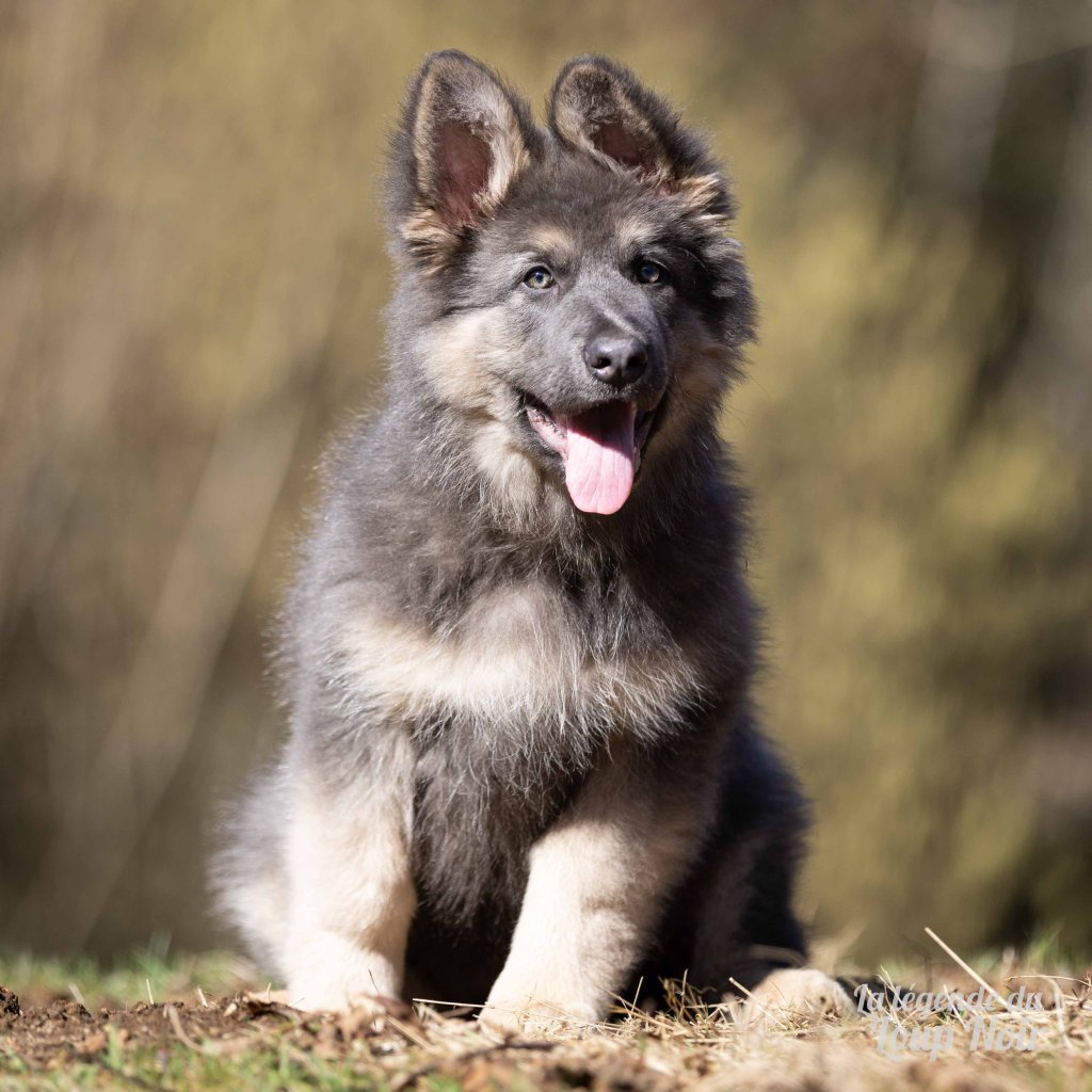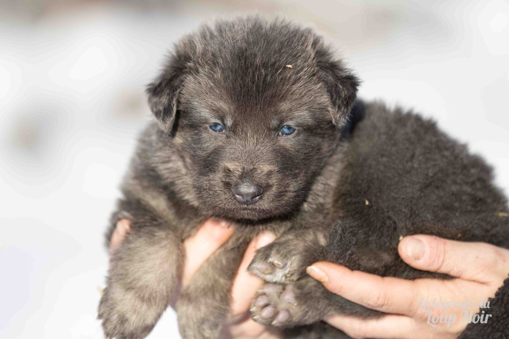 Ses superbes yeux jaunes clairs et expressifs lui donnent un regard de louve qui touche immédiatement le cœur.