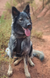 Blue est une chienne proche de l’humain, sociable et attentive. Bien à l’écoute, elle aime partager le quotidien de sa famille.