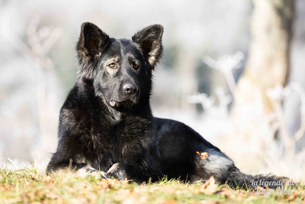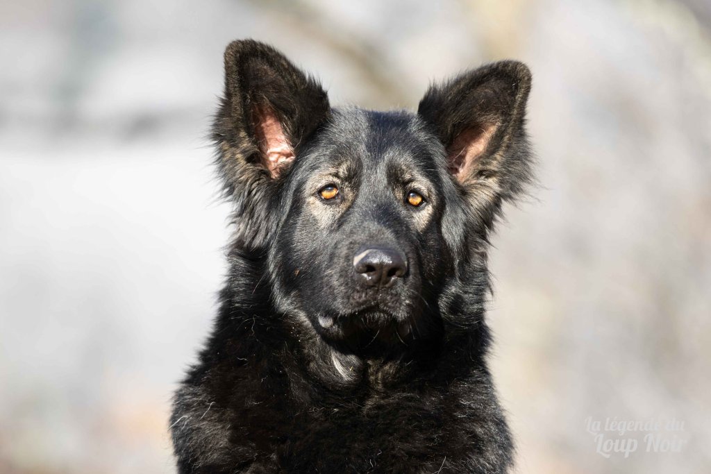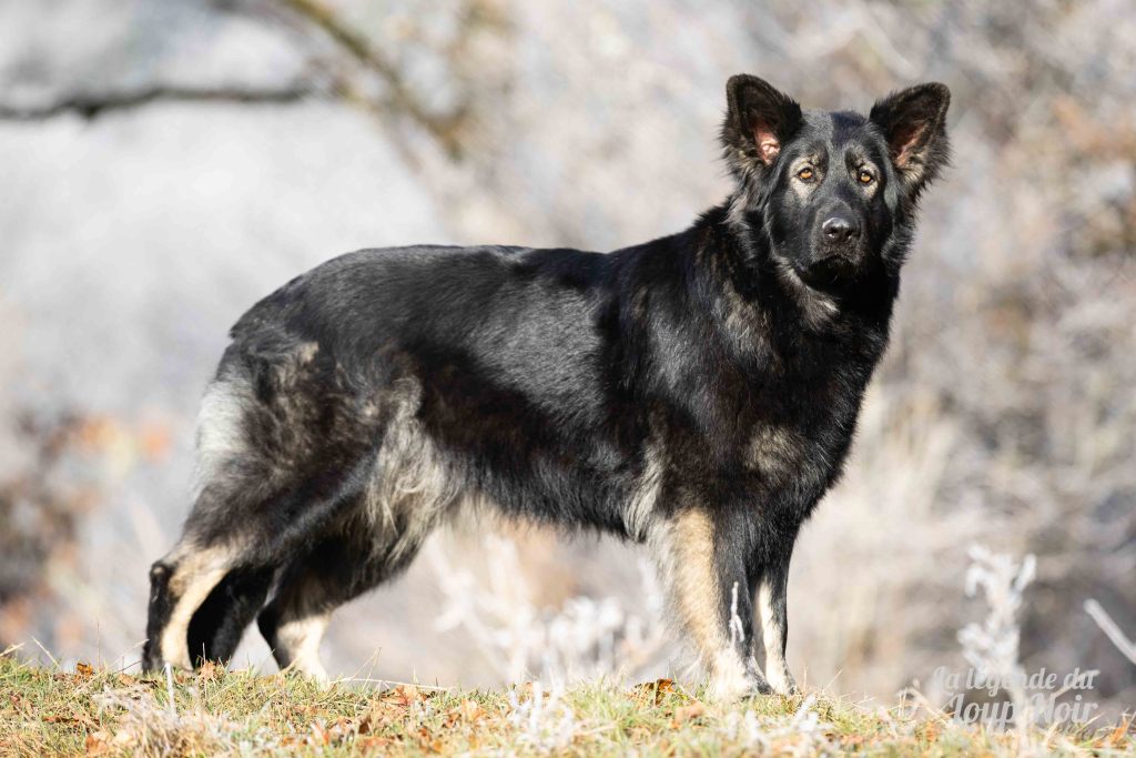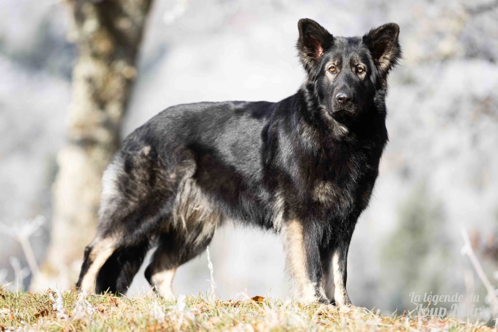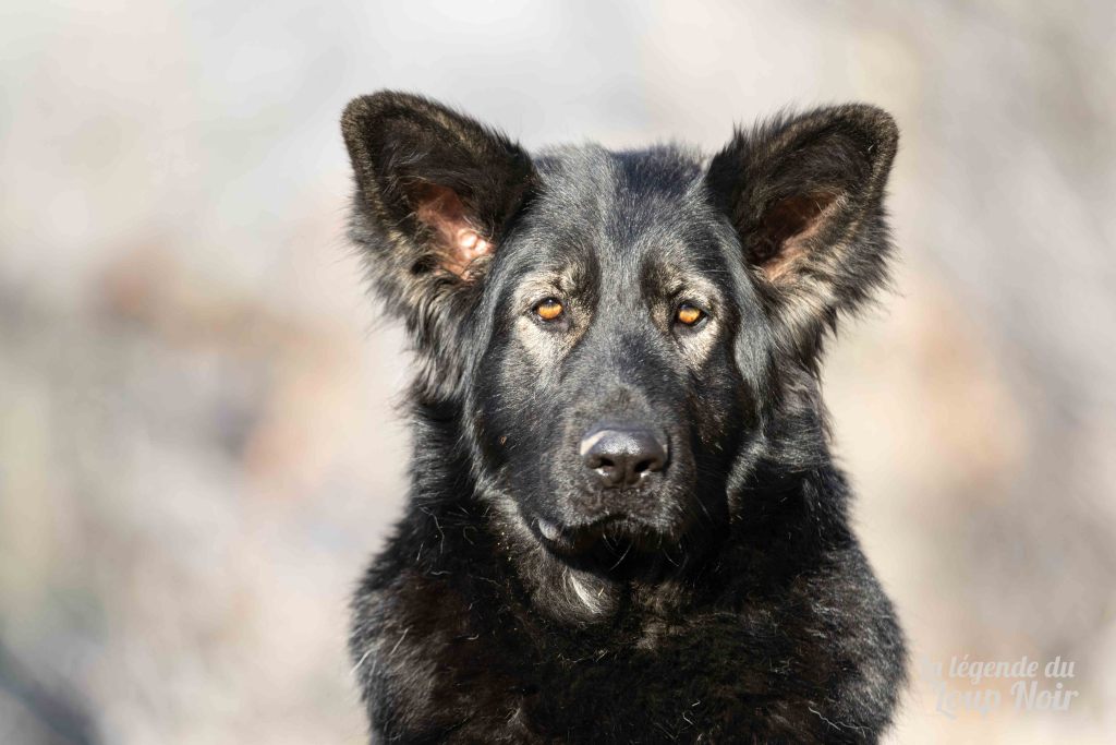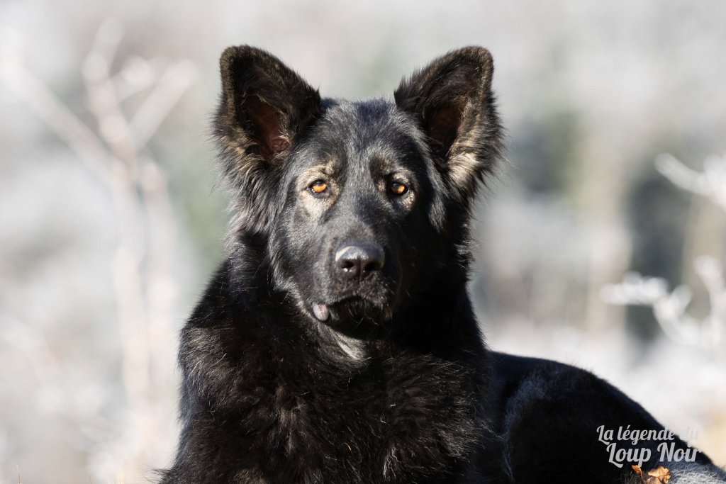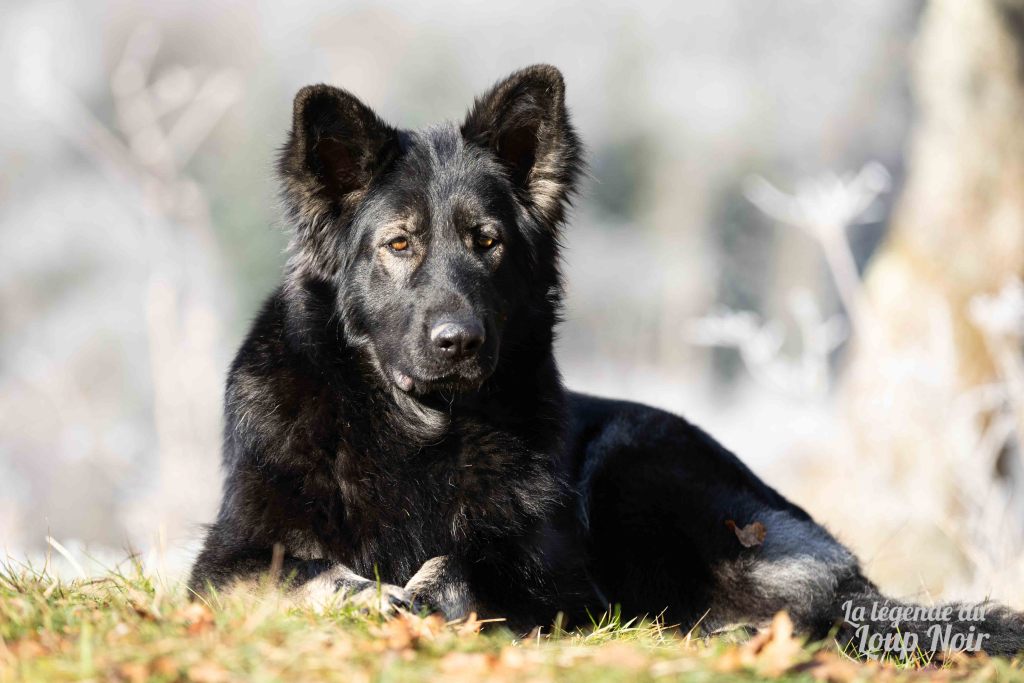Elle est joueuse et a un petit côté espiègle qui lui permet de désamorcer ses congénères de notre meute. Elle est calme et posé comme son papa en dehors des parties de jeu 😉 Côté couleur, c’est de l’inédit dans notre élevage, un argenté charbonnée extrêmement foncé qui est très rare!