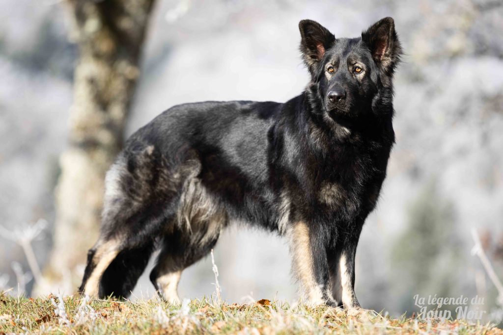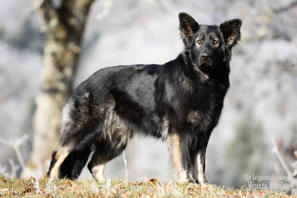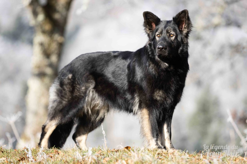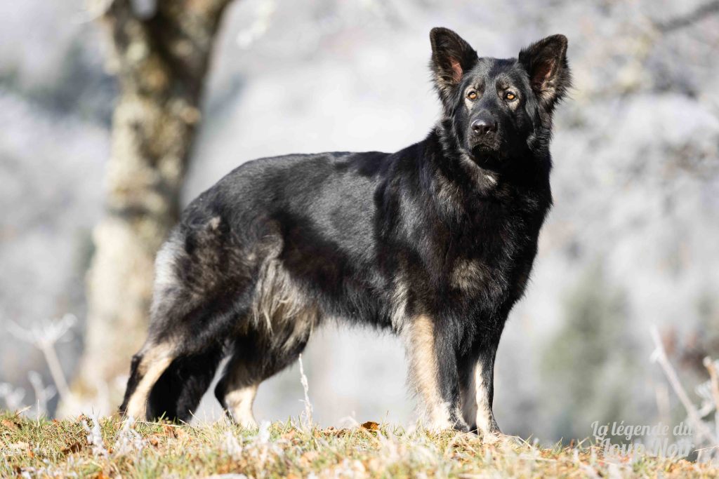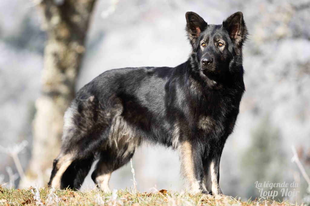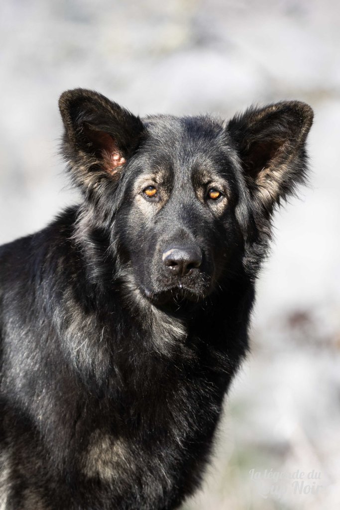 Elle est joueuse et a un petit côté espiègle qui lui permet de désamorcer ses congénères de notre meute. Elle est calme et posé comme son papa en dehors des parties de jeu 😉 Côté couleur, c’est de l’inédit dans notre élevage, un argenté charbonnée extrêmement foncé qui est très rare!