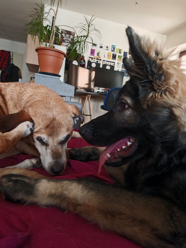 Une petite dernière portée de 2 chiots, deux mâles charbonnés.