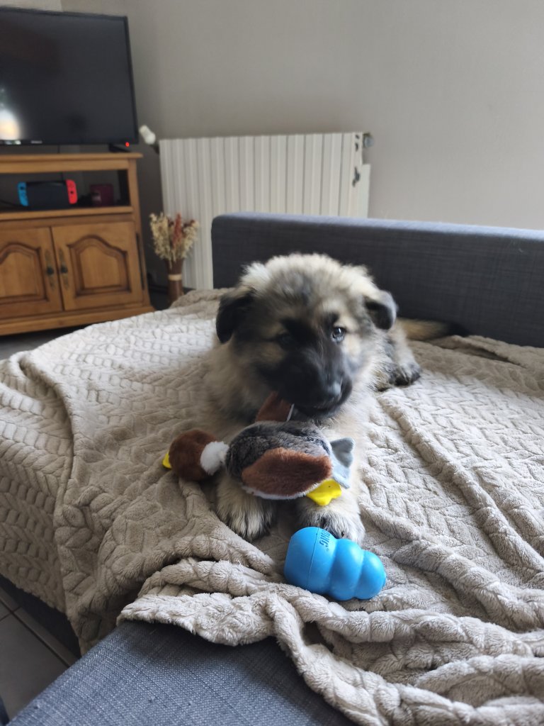 Retrouvez les photos des chiots dans leur septième semaine : Retrouvez la vidéo des chiots dans leur sixième semaine :Retrouvez les photos des chiots dans leur cinquième semaine :