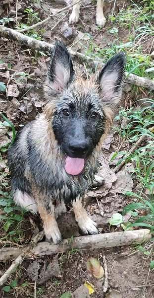 Une belle portée de 8 chiots, tous gris argentés charbonnés.