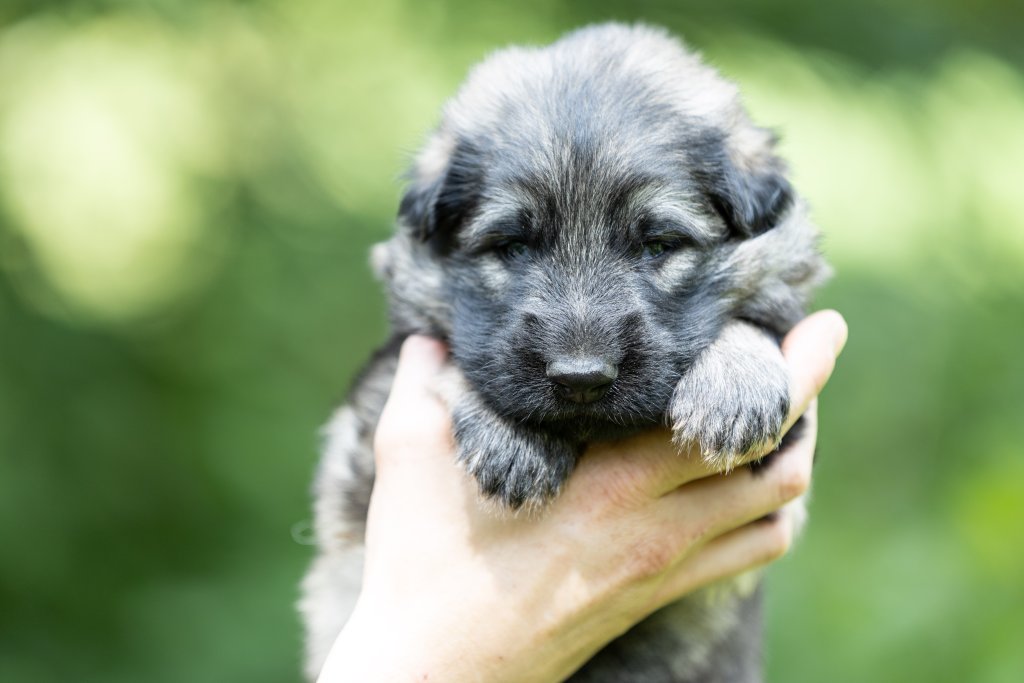 Petite dernière portée de 4 chiots, deux mâles et deux femelles tous gris argentés charbonnés.