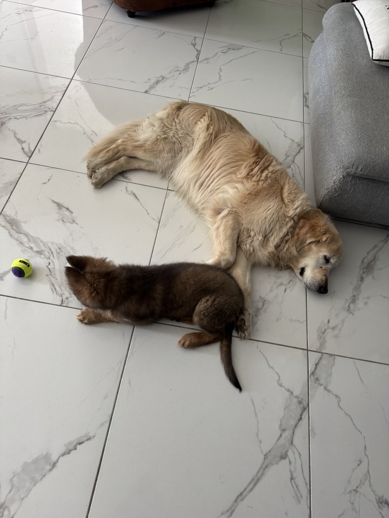 Retrouvez les photos des chiots dans leur septième semaine : Retrouvez la vidéo des chiots dans leur sixième semaine :